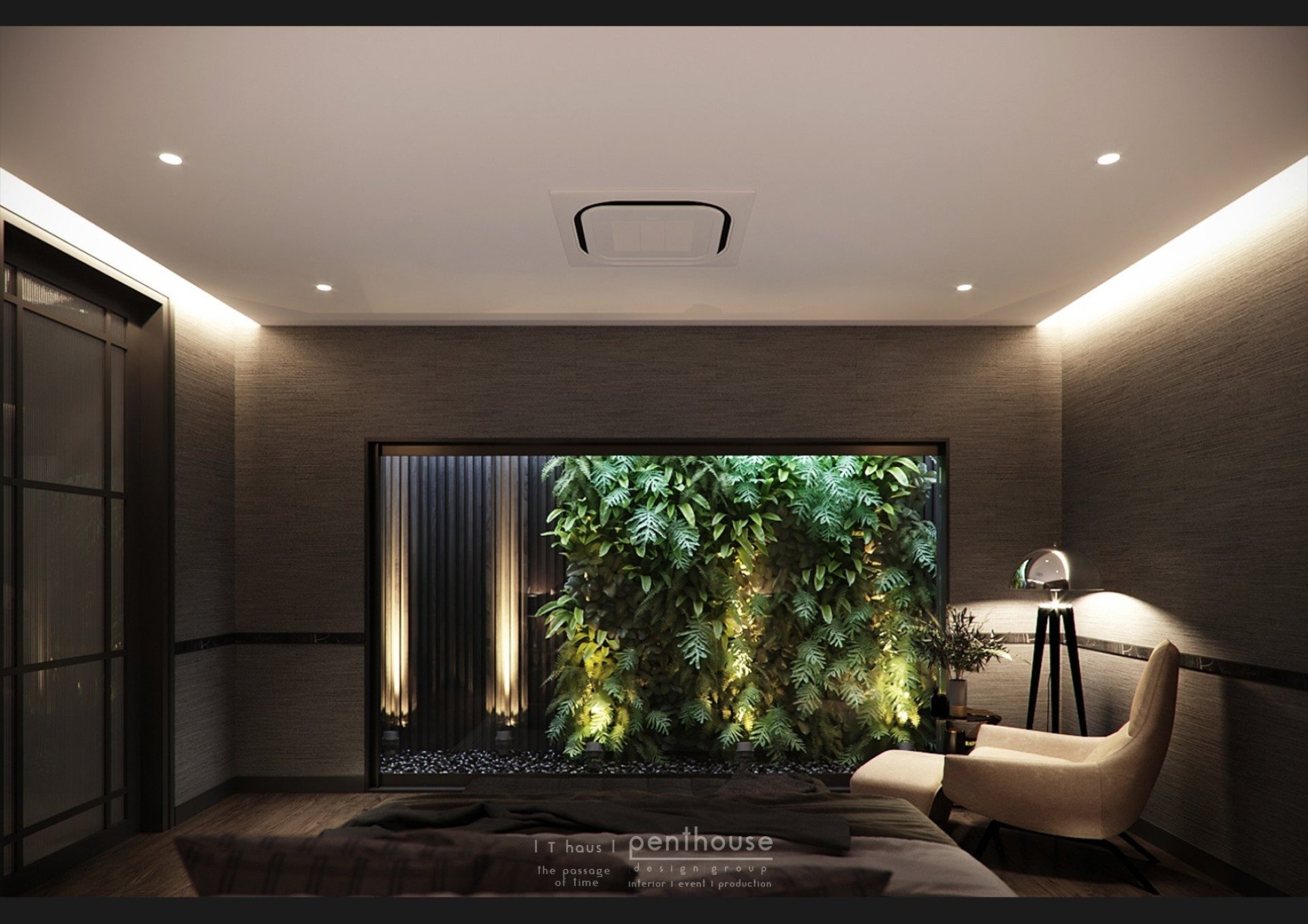 เริ่มต้นที่โถงทางเดินเพื่อเข้าสู่ห้องหลักของโครงการ ตัวโถงทางเดินเป็นทางเดินยาว หักเป็นตัว L โดยเราเปลี่ยนพื้นใหม่เป็นกระเบื้องลายหินอ่อนสีดำ black marquina ตัดกับตู้ สีขาวหน้าบานเดินคิ้วบัวเพื่อแทรกความเป็น classic เดิมเข้ามาเล็กน้อย แบ่งให้มีพื้นที่นั่งใส่รองเท้า พร้อมกระจกเงาก่อนออกจากบ้าน และมีตู้ที่เจาะช่องวางของแนวยาว สำหรับวางกุญแจ หรือของใช้ทั่วไปได้ ตัวตู้ที่มีความยาวต่อเนื่อง เราตั้งใจแบ่งตัดด้วยส่วนที่เป็นชั้นโชว์ วางของสีดำลายหิน เพื่อไม่ให้ตู้ดูยาวมากเกินไป และตั้งใจเปลี่ยน design หน้าบานตู้โดยการตัดคิ้วไม้ออก ให้มีความเป็น modern เข้ามาแทนเพื่อบ่งบอกถึงการนำเข้าไปสู้ความรู้สึก ของพื้นที่ใหม่ งานฝ้าเพดานจะทำเป็นไฟหลืบคู่ ต่อเนื่องไปกับทางเดิน เพื่อนำสายตาไปสู่จุดต่อไป เมื่อเดินไปจนสุดทางก่อนที่จะเลี้ยวเข้าพื้นที่ส่วนรับแขก ตัวบ้านเดิมจะมีพื้นที่หนึ่งซึ่งแต่เดิมเป็นพื้นที่เหมือนเป็นระเบียง แต่ทางเจ้าของได้ทำการปิด มาเป็นพื้นที่ใช้สอย ตรงสวนนี้เนื่องจากเป็นอีกจุดที่เหมือน จุดพักสายตาและสิ้นสุดของทางเดิน ทั้ง2ทาง เราจึงออกแบบให้เป็นซุ้ม หินอ่อนซ่อนไฟ วางปฏิมากรรมหุ่นโชว์ ที่เป็นของสะสม ของเจ้าของบ้านครับ พื้นที่ทางเดินอีกทางเราตกแต่งให้เป็นผนังไม้ dark oak ตัดด้วย pattern stainless ทางเดินตรงนี้จะให้ความรู้สึกที่สงบมากขึ้นเพื่ปรับสายตาก่อนที่จะเข้าห้องรับแขกครับ เมื่อเปิดประตูเข้ามาในส่วน รับแขกที่เรามีการกั้นแบ่งพื้นที่ใหม่ โดยรวม function ทั้งห้องนั่งเล่นพักผ่อนกับพื้นที่กึ่งทำงานอเนกประสงค์ ให้ใช้พื้นที่เดียวกันได้อย่างกลมกลืน
