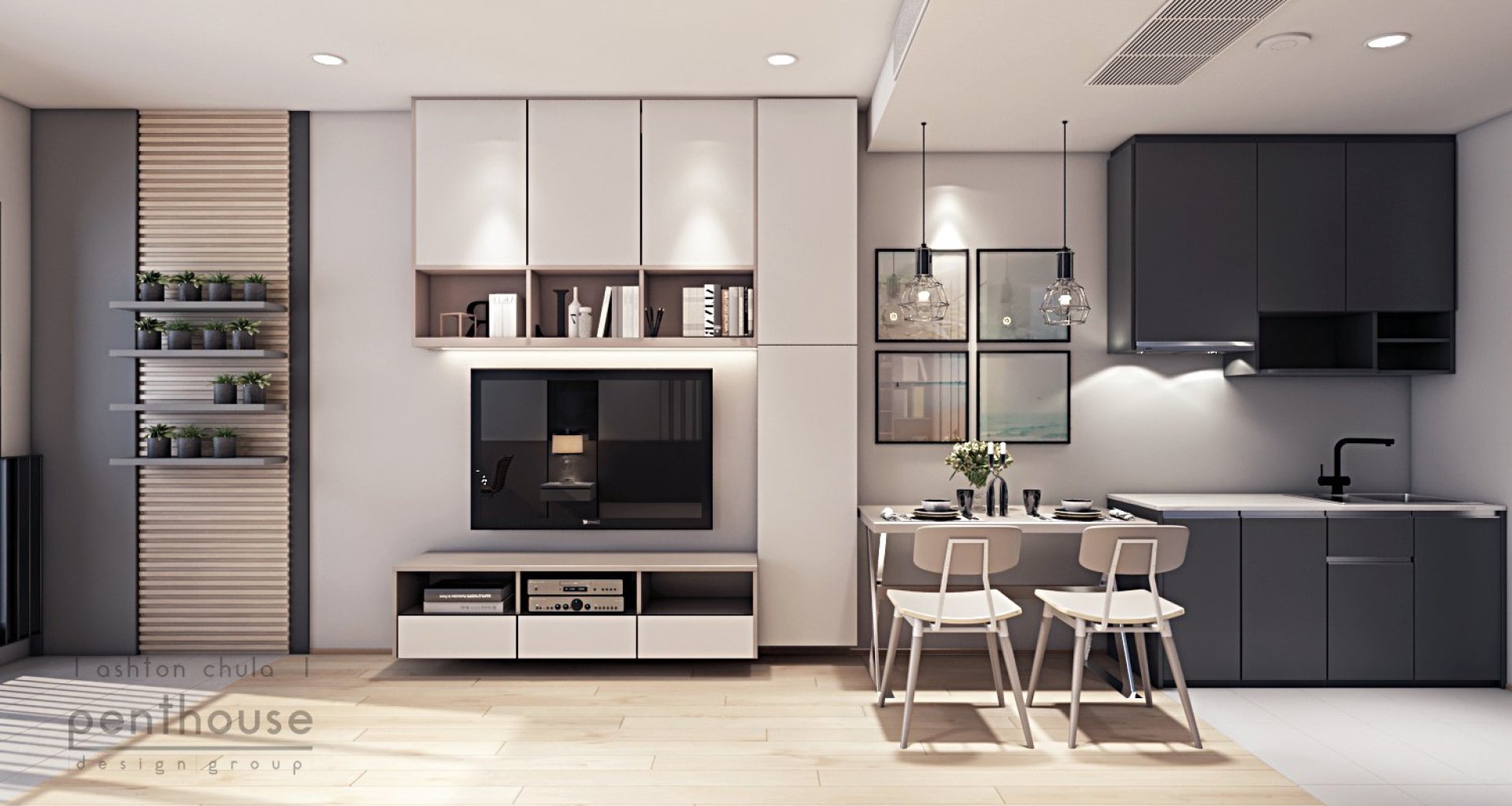 งานออกแบบคอนโด 1bedroom 34.5 ตารางเมตร เป็นงาน scale กำลังพอดีสำหรับพักอาศัย ในเมืองที่เป็นศุนย์กลางธุรกิจอย่างกรุงเทพฯ ซึ่งเป็นทำเลทองหนึ่งของไทย โดยออกแบบเน้นเรียบง่ายสว่าง และไม่อึดอัด อยู่ในงบประมาณที่ ไม่มากและน้อยเกินไป
