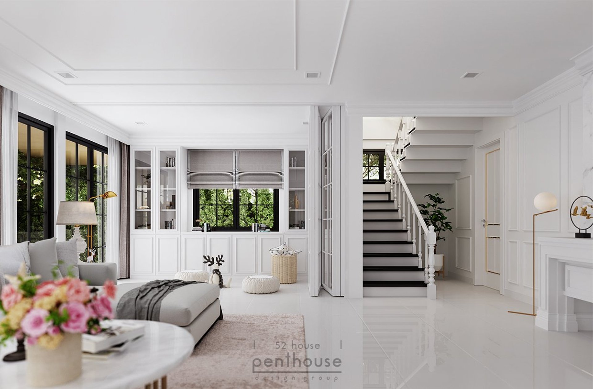 งาน renovate บ้านพักอาศัย 2 ชั้น โครงการใหม่ของทาง penthouse design group โดยบ้านเดิม ก่อสร้างมา ไม่ต่ำกว่า 20 ปี ตัวบ้านสภาพแข็งแรงถึงแม้จะก่อสร้างมานานแล้ว ทางเราได้นำเสนอปรับปรุง และจัดสัดส่วนพื้นที่ใหม่ ให้เหมาะสมกับเจ้าของบ้านได้อย่างลงตัว และอยู่ในงบประมาณที่ สมเหตุสมผลที่สุด งานออกแบบเป็น style modern classic ขาวเรียบ และหรูมี detail โอบล้อมด้วยสวนเล็กๆอบอุ่น เป็นเหมือนวิว ที่ร่มรื่นให้กับตัวบ้าน